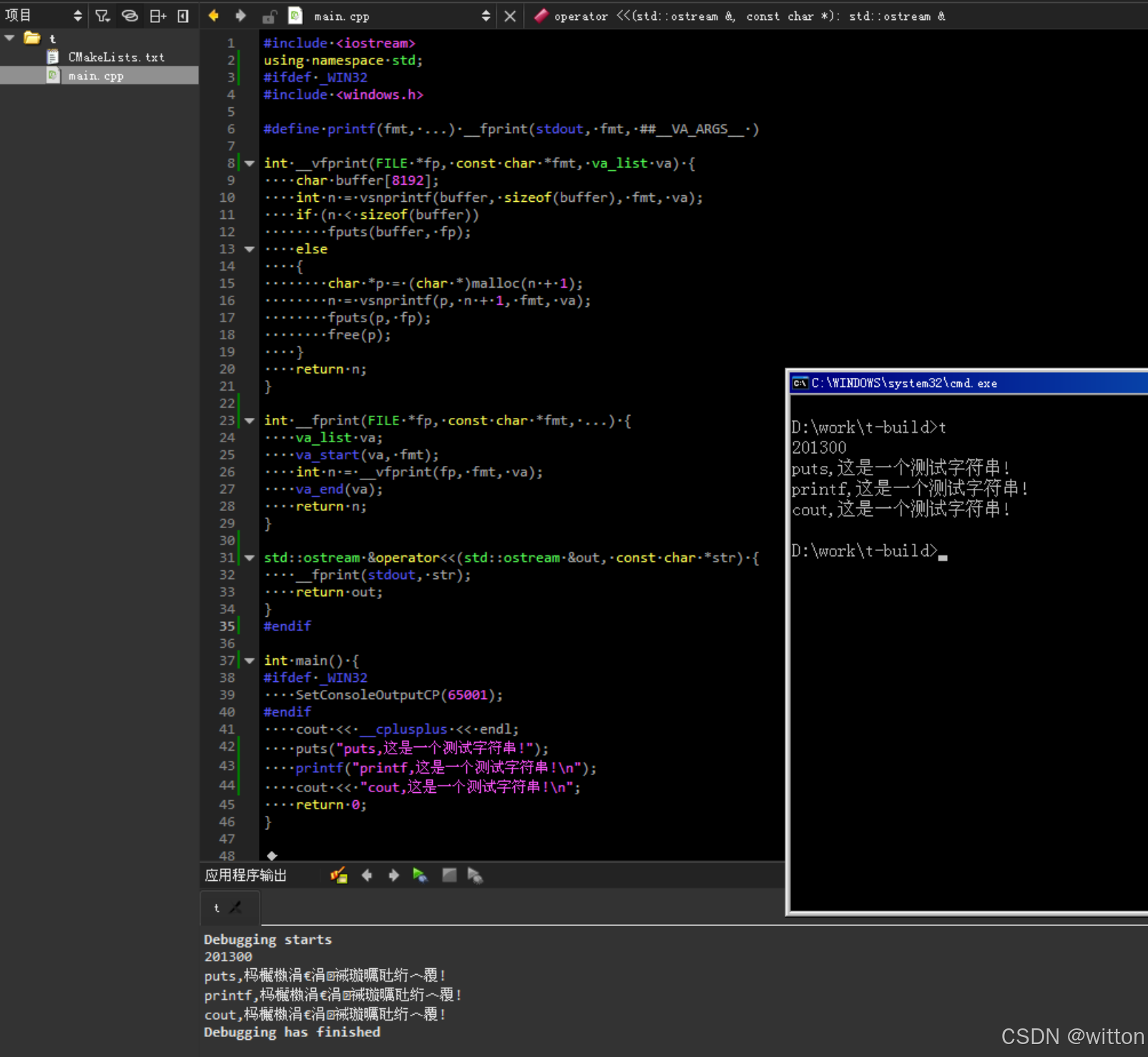 测试程序main.cpp为UTF8编码: