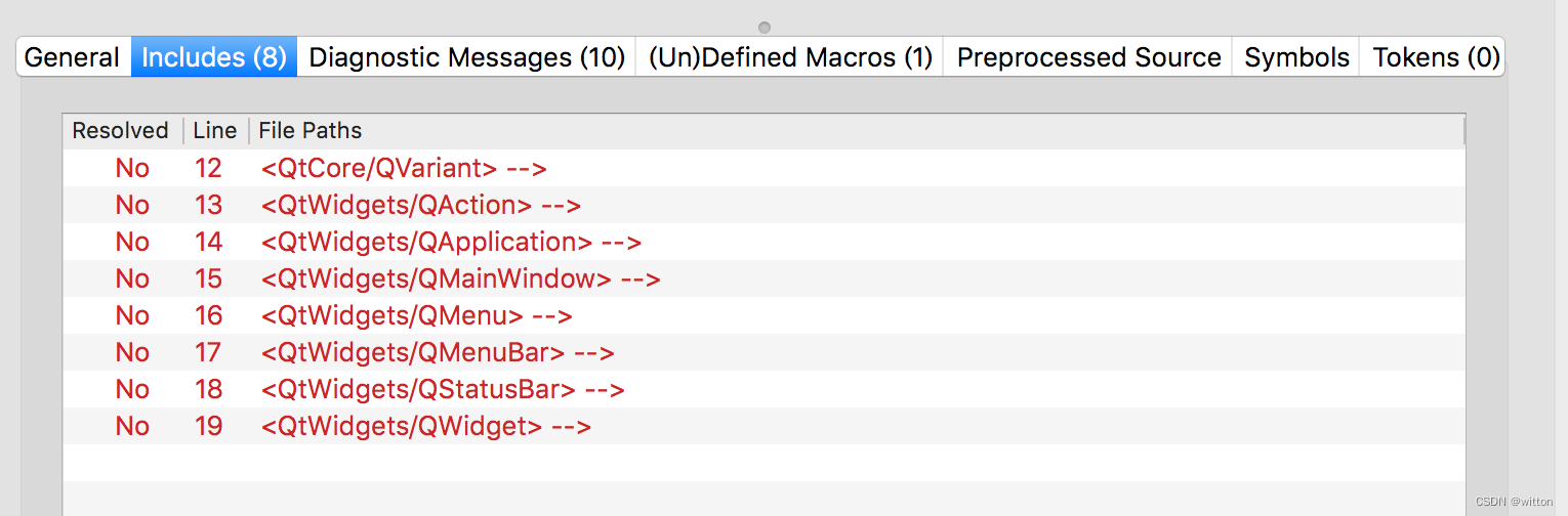 - 使用CMake构建系统时,智能提示有问题,Qt Creator中不能跳转打开Qt的头文件,报警告: