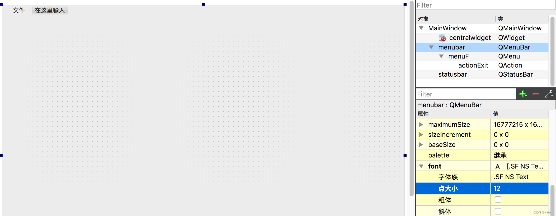 前面我们在界面设计器中将菜单的字号设置成12号后,界面设计器中可以正常显示了,但是运行后,看不到菜单: