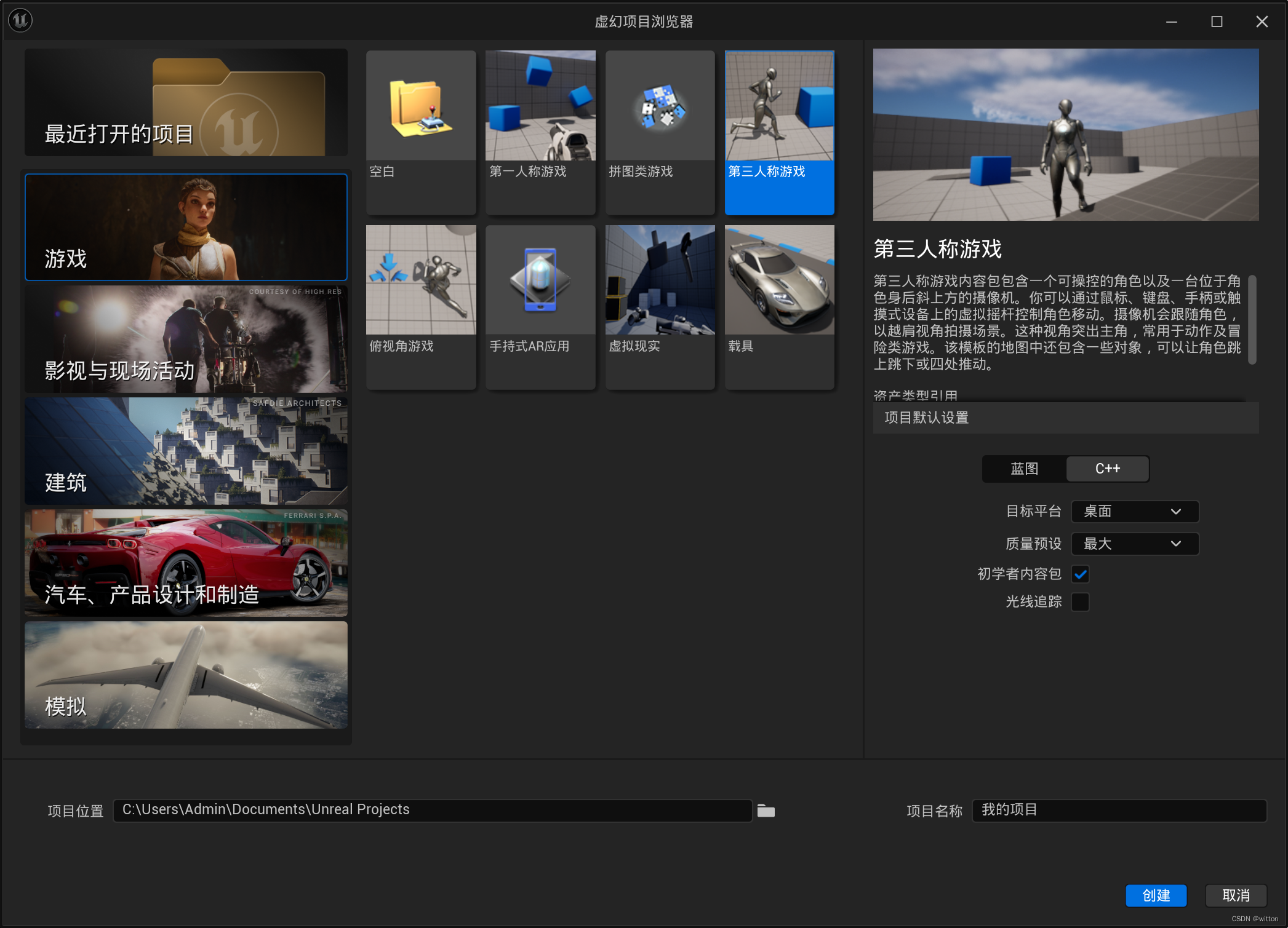 - 原文链接:https://wittonbell.github.io/posts/2024/2024-05-18-unreal-engine-5.3.2-创建游戏项目/