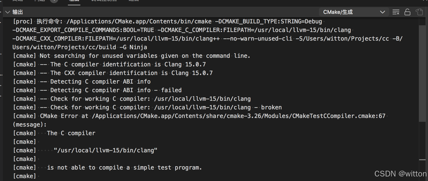 无法正确执行CMake,CMake在编译简单的测试程序时,无法通过。