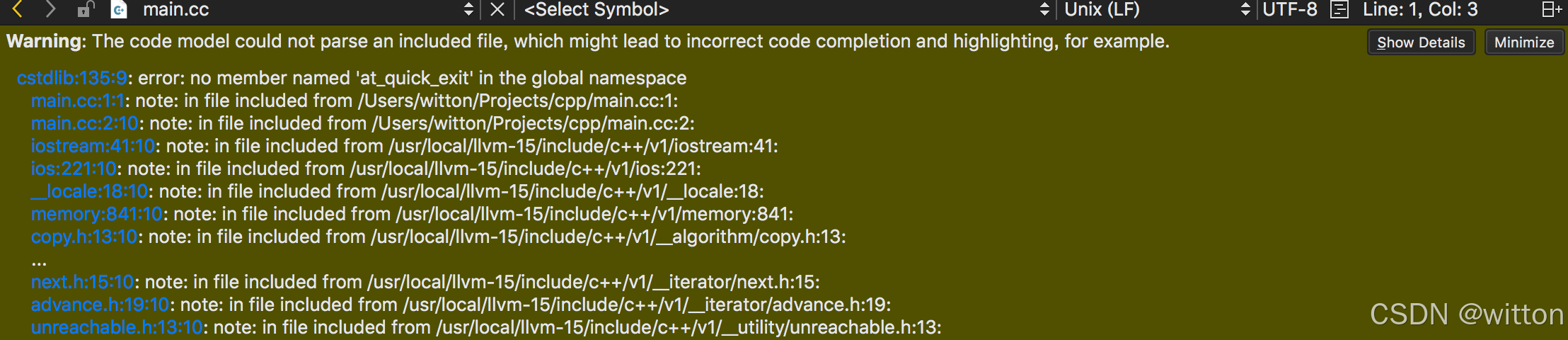 笔者MacOS系统原来的C库缺少这几个函数的,可以在一个头文件中声明一下,不让QtCreator报警告: