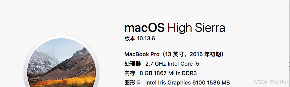 的,出厂系统是MacOS10.12(Sierra),后面自己升级安装到10.13(由于只有128G硬盘,不能安装太新的系统):