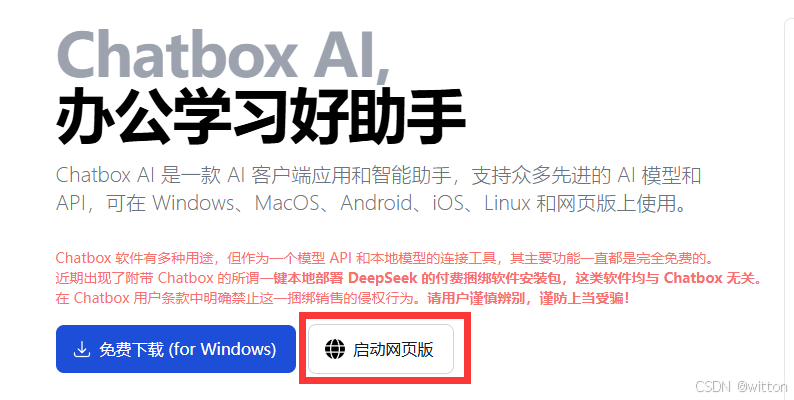二、直接在 chatboxai的官网,启动网页版本: