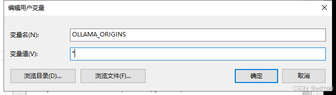 在Windows中设置一下环境变量:OLLAMA_ORIGINS