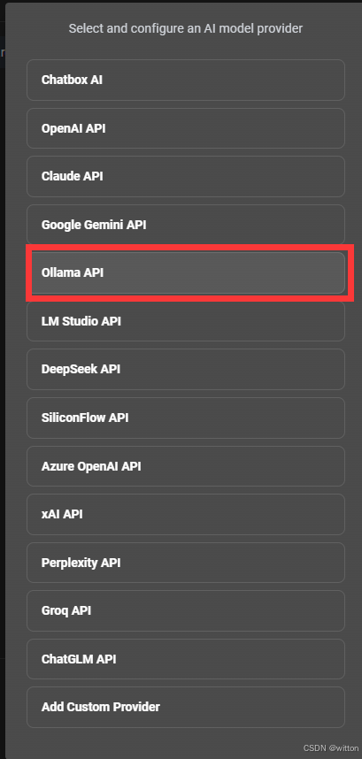 然后选择Ollama API